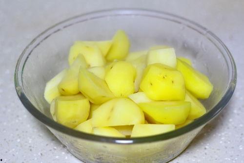 4. 腌制:将切好的土豆块放入碗中,加入适量的盐、胡椒粉、孜然粉等调料,搅拌均匀,腌制10分钟左右。